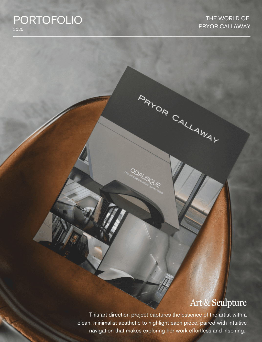 This art direction project captures the essence of the artist with a clean, minimalist aesthetic to highlight each piece, paired with intuitive navigation that makes exploring her work effortless and inspiring. www.pryorcallaway.com